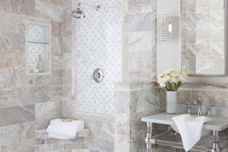 Silver Travertine Tile Shower Traditional Bathroom